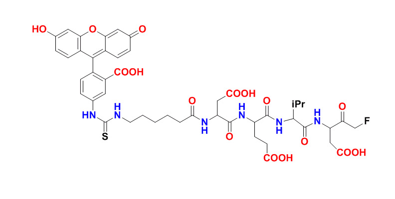 胱天蛋白酶的活化在細(xì)胞凋亡中發(fā)揮著主要作用。FITC-C6-DEVD-FMK提供了在活細(xì)胞中靈敏檢測活化的胱天蛋白酶-3的方便手段。FITC-DEVD-FMK是細(xì)胞滲透性的,無毒的,并且不可逆地結(jié)合到活化的胱天蛋白酶-3在細(xì)胞凋亡。在FITC標(biāo)記的可用于直接檢測活化的胱天蛋白酶的凋亡細(xì)胞可通過熒光顯微鏡,流式細(xì)胞儀,或熒光板讀數(shù)器進行。