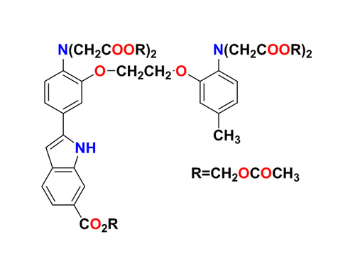 Indo-1是一種細(xì)胞生物學(xué)常用的鈣離子熒光探針,Indo-1能特異性地結(jié)合Ca2+,同時(shí)可發(fā)出熒光,Indo-1是極性大的酸性化合物,無法進(jìn)入細(xì)胞內(nèi),使其成為Indo-1/AM,該變化既增加了酯溶性又消除了負(fù)電荷,極大的提高了細(xì)胞滲透性。